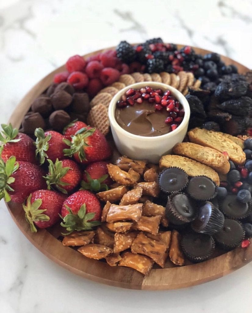 Fruit + Chocolate = the perfect combo. I like to put a variation of this board out after dinner parties, so everyone can casually serve themselves fruit (on the lighter side) or go straight for the sweets! Or, if they like both, they can dip the fruit into the chocolate dip!