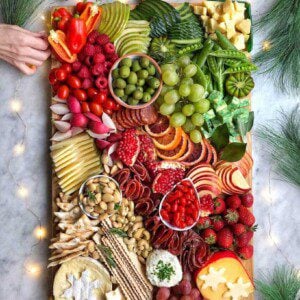 To get ready for the holidays, I teamed up with @TheDelicious and @PSIMadeThis to create a festive cheese board! This board has it all–cheese, meats, fruits, veggies, and a lot of Christmas cheer! It’s perfect for serving before Christmas dinner or bringing to a holiday party for some wow factor. The best part is, you can swap in your favorite cheeses, charcuterie, and produce–just stick with the green and red theme and you’ll get the same effect.