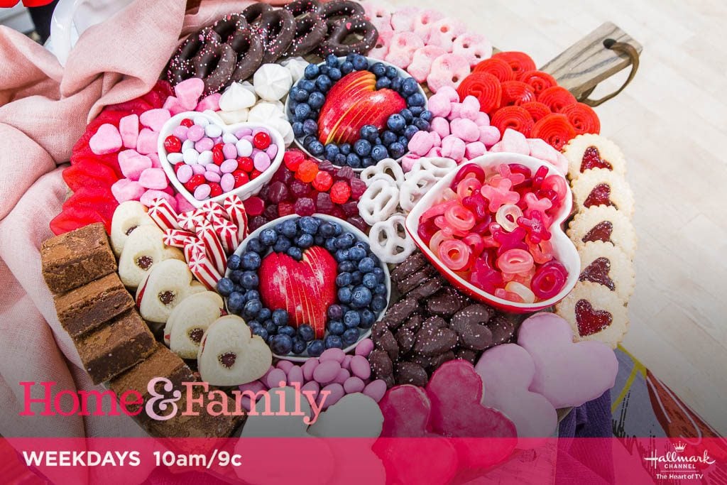 My Galentine’s Day Board and famous heart-shaped apple design were featured on The Hallmark Channel’s Home & Family show. Watch the full Home & Family segment on YouTube here, and below, for how to style this board.