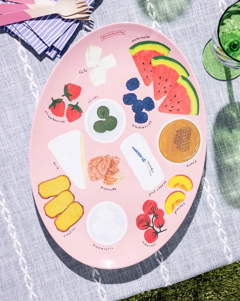 The summer version of my best-selling map board. It’s in color and melamine, perfect for picnics, outdoor gatherings & the pool. Simply follow the guide to place ingredients & create a stunning spread.